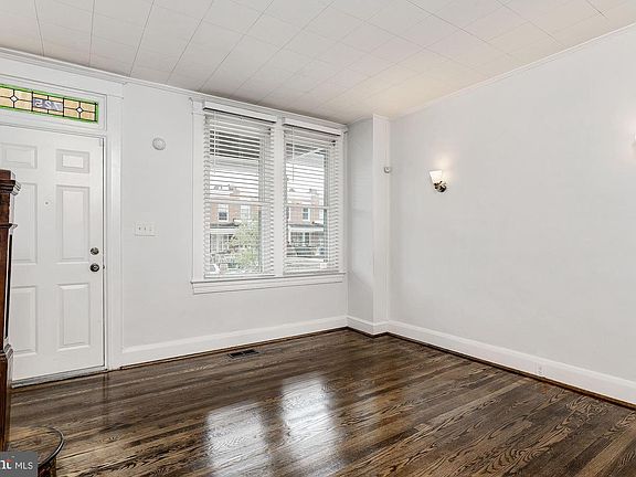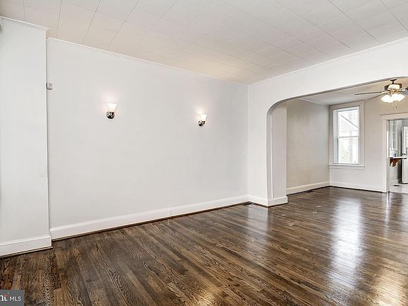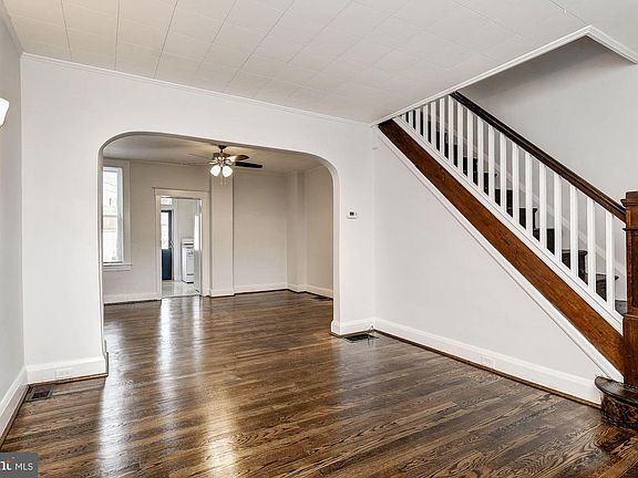 Enter into this beautiful rowhome by way of the front porch and step through the front door with stained glass transom window and arrive into the open living and dining rooms that feature custom blinds, scones, arched doorways, and gorgeous hardwood floors. Let the kitchen entice you with ceramic tile flooring, ample storage, breakfast bar, display cabinetry, and modern backsplash. Relax and unwind in the sun-drenched master bedroom with crown molding and ceramic tile glass door walk-in hall bath. The fully finished lower level with recessed lighting, ceramic tile flooring, and powder room is ideal for entertaining family and friends and watching the big game. Two car parking pad and close proximity to I-895, US-40, and I-95.