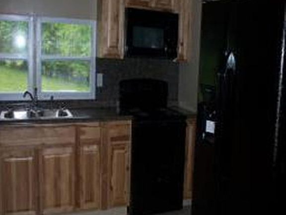Completely remodeled singlewide home on level 0.57 acres. Home has new kitchen with cabinets, refrigerator, stove/microwave. Ceramic tile in kitchen and bathroom. Other rooms are laminate. New step-in shower in bathroom with new vanity. New Heat pump and metal roof. Covered front and back porch. Home is move in ready. Will not do Rent-To- Own.