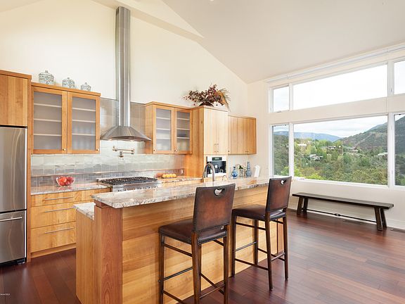 Arguably the premier lot at The Wilds, this beautiful end unit townhouse is where you'll enjoy sunrises looking east and sunsets to the west. The main living level open floorplan under vaulted ceilings is graced with an abundance of natural light from large windows and glass sliding doors that connect to to an outdoor balcony on the east side and a large rooftop deck looking south and west. Views from the home span from the Frying Pan Valley to the valley floor overlooking the Town of Basalt and Roaring Fork Club to Mt. Sopris. The master suite is generously sized with a sumptuous master bath and custom walk-in closet. Two other ensuite bedrooms also enjoy outdoor balconies. The Wilds is Basalt's luxury address reminiscent of a European hillside community with Tuscan inspired exteriors and