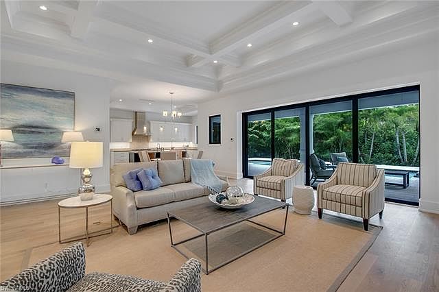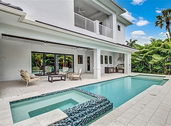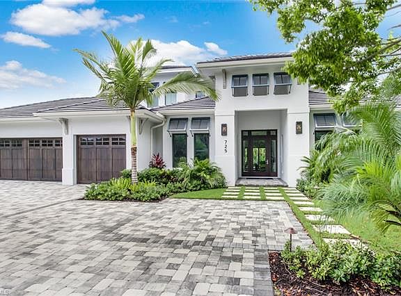 Experience the picture-perfect Naples lifestyle in this hidden gem. Thoughtfully crafted by triple Sand Dollar award winning builder Milestone Development and Design, this Coastal beauty skillfully pairs the best of contemporary style while still providing a warm comfortable atmosphere. The gourmet kitchen boasts functional design with local custom cabinetry and Sub-Zero/Wolf appliances. The adjoining great room shines with beam ceiling details, white oak floors and linear propane fireplace. The outdoor living space features shell stone paver lanai with Cypress tongue and groove, decadent outdoor kitchen, luxury swimming pool/spa with wet deck and fire pit. The downstairs master suite includes double walk in closets with built-ins, and palatial master bath. The second floor is a home away from home with three spacious en suites surrounding a second family room with kitchenette, laundry room and private covered balcony. Other notable features: impact rated windows and doors, Icynene insulation, Lutron lighting control system, A/V pre-wire, extra air conditioned storage closets (prepped for future elevator), and professionally lighted landscaping package.