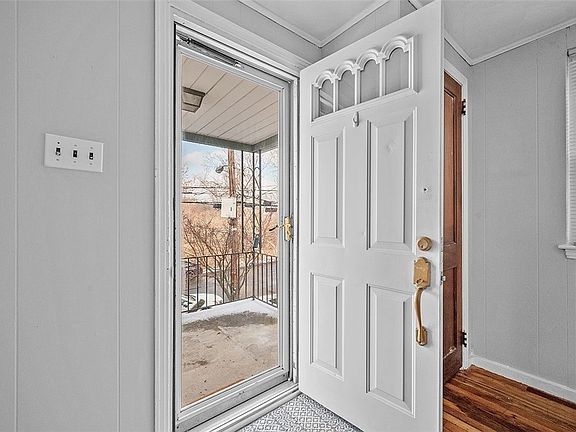 Home ownership is within reach with this well valued free standing home. It is bright and sunny and move in ready, although you may want to customize to make it your own. The hardwood floors are a lovely golden oak and recently refinished and the interior has been painted a neutral chic color. There is a functional kitchen, lots of storage and newer appliances. If you want a first floor family, a full bath on the first floor, and a three season solarium you found it. Think of all the possibilities of extra living space. Upstairs are three bedrooms and an updated full bath. There is a chicken coop with a city permit to raise chickens all part of this extensive back yard, with newer retaining walls. Integral garage and ample place to park a second car in the driveway and one off street. SWEET. Very convenient to 376 access!! This house could be your happy home.