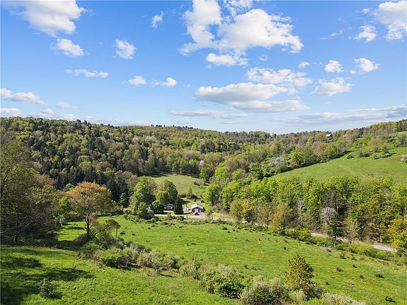 A gorgeous 217 acre farm in the heart of Spencer with sprawling land on both sides of the road. Pulling up, there are flowering trees and a quaint home nestled at the foot of the hills with a brand new oil furnace and a newer two car garage. A separate building that had been used as a sap house sits here as well and would make a great workshop, business, storage, or any other number of possibilities. Immediately across the road is the creek which winds through the property and carries the sound of rushing water right outside your front door. The old maple syrup lines are still up and bring in enough sap for a business. The land has been well kept: brush-hogged, hayed, and farmed regularly. About 50/50 tillable and wooded with log roads and trails in place around the property. The wooded portions contain hard and soft woods including maple, ash, and hemlock. Further down the road sits a massive barn that could house any number of animals or machinery. The whole property contains is fenced in and ready for livestock. Continuing west down S Hill Rd sits another cleared 1.5 acre lot with an electric pole and artesian well already in place- ready to be built on if desired. For hunters there is plenty of wildlife: deer, turkey, grouse, bears and a bird watching paradise. Multiple ponds dotted around the land and originally used for livestock water. Hilly elevations on either side of the road that offer stunning distant views and various seasonal streams throughout. Many different pastures, fruit trees, and scenic spots to explore. Build a maple syrup business, board horses, host hunters, farm food and livestock, simply enjoy your workshop and acreage, the opportunities are endless. This land truly has it all no matter what direction you want to go with it.