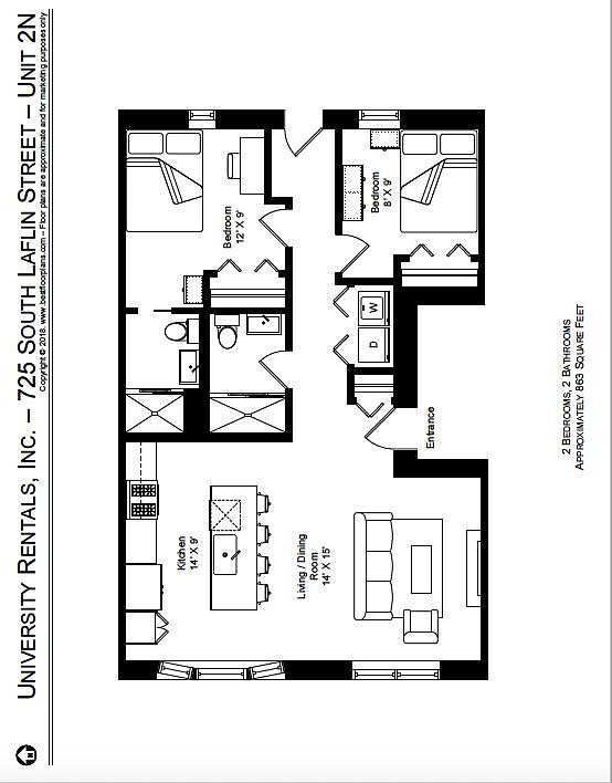 This property is owned and managed by University Rentals, Inc, the oldest, privately owned real estate management company in the Near West Side area of Chicago/Little Italy. A newly renovated and fabulous 2 bedrooms with 2 bathrooms. These apartments have in unit laundry, upscale stainless steel appliances, quartz counters and to die for marble bathrooms with heated towel bars. These are truly the best apartments in the area. Location is superb! There are 2 units available in this building ranging from $2450-2500/month for 2 people. Units are available starting August for 12/14 month leases. Visit university-rentals. more information and floor plans.