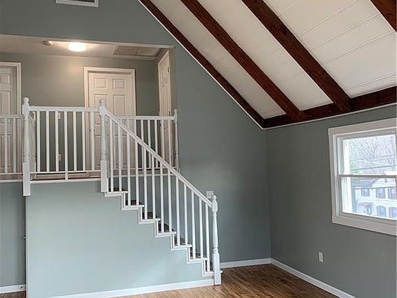 Conveniently located near Middlesex Hospital and Wesleyan University, this rental unit is zoned both residential and commercial. The second floor property has been completely renovated and has high quality laminate flooring throughout. Pristine and available immediately, it has been painted in a neutral yet modern color scheme. The apartment has two spacious bedrooms, a full bath with a shower stall along with a great kitchen complete with plenty of counter space and new cabinetry and appliances. The beamed, cathedral ceiling adds style to this living room and the space is always filled with natural light. There is a washer and dryer within the unit and plenty of closets for storage. Location is ideal and has easy access to routes 9 and 91. Credit report and background check required along with references. Good credit a must, no pets allowed and smoking not permitted.