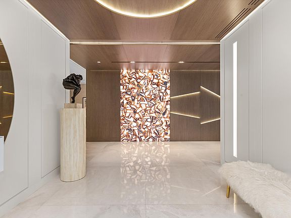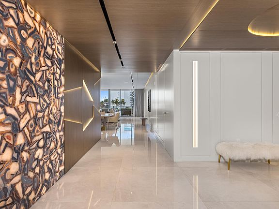 Experience the pinnacle of waterfront living at Boca Beach Residences. Professionally designed by Farache Bromberg Design Studio and offered fully furnished, every detail of this impeccably designed home has been elevated - from high ceilings and bespoke marble floors to rich woodwork and custom finishes throughout. The residence offers a private primary wing on the water, two spacious guest suites, open living and family rooms, and a state-of-the-art Gaggenau kitchen. Expansive glass sliders frame panoramic views of the Intracoastal, Boca Inlet and Lake Boca. Additional features include fully automated smart home via Control4, custom primary closet with island, four parking spaces including a private air-conditioned two-car garage with storage, and a 50' boat slip. Boca Beach Residences owners enjoy access to five-star amenities and a premier location near The Boca Raton, Mizner Park, and the private Boca airport. Come live the Coastal Boca Raton Luxury Lifestyle.Residence HighlightsExceptional InteriorsMeticulously curated with high-end materials and finishes, this residence features 48" squared marble floors, custom hardwood millwork throughout, luxurious wall coverings, and designer lighting. The open-concept layout flows effortlessly between formal and casual living spaces, creating a harmonious environment for entertaining or unwinding in privacy. Gourmet KitchenThe chef's kitchen is appointed with integrated Gaggenau appliances, a gas cooktop, leathered Taj Mahal marble countertops, wine refrigeration, appliance garage, and sleek, MiaCucina cabinetry that blends functionality with refined design. Private QuartersThe primary suite offers an expansive custom closet system with backlit displays and an elegant central island. The primary bathroom boasts a wet room complete with accent lighting and steam, and custom vanities with Cristallo Marble. Secondary bedrooms provide ensuite privacy and bespoke closet systems. Unmatched ViewsFloor-to-ceiling windows and multiple exposures offer panoramic water views of the Intracoastal, Boca Inlet and Lake Boca, enhancing the serene coastal ambiance of this one-of-a-kind home. Boca Beach Residences LifestyleResort-Caliber AmenitiesEnjoy the exclusivity of a boutique waterfront development with full-time concierge, valet, fitness center, sauna and treatment rooms, resident lounges, resort style pool and spa along the Intracoastal, and private boardwalk access. Marina & ParkingThis offering includes a 50' private boat slip, four dedicated parking spaces - two of which are enclosed in a private air-conditioned garage, and a secured storage room. Premier LocationNestled on 3.2 acres of waterfront property, Boca Beach Residences is moments from The Boca Raton, Mizner Park, private Boca airport, Town Center Mall, and white sand beaches - offering world-class dining, shopping, and entertainment in one of South Florida's most desirable enclaves.