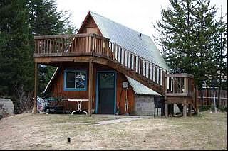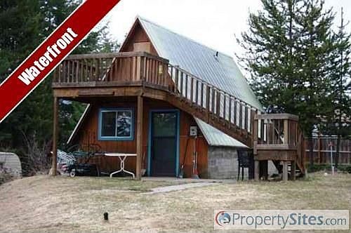 50' of frontage, modest "A" Frame with panoramic view. Excellent building site for future home or enjoy the property for what it is. Nice firm sandy beach with fireplace. Conveniently close to the public boat launch. New Pontoon dock, closes to store - sprinkling system. Public water and sewer system. Large deck to enjoy the sunset views.