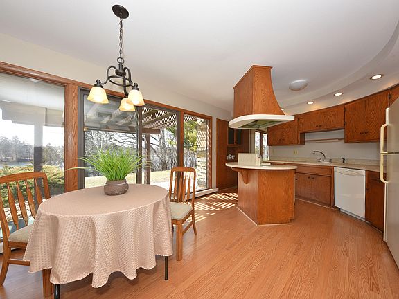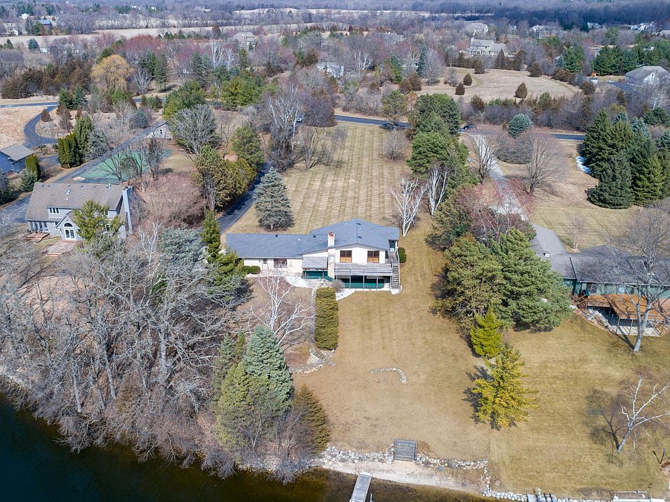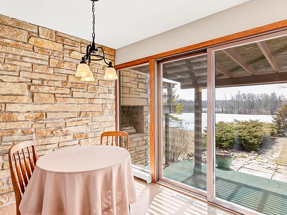 Pristine and private, Waterville Lake is adjacent to the Glacial Drumlin State Hike & Bike Trail and tucked next to Lapham Peak Park. The spacious home on a large 1.6 acre lot features mid-century modern architectural details; exposed lannon stone, walls of windows, curved walls, hardwood floors, 5 sets of sliding doors that lead to decks & patios overlooking 159 feet of sand & gravel beach. This great swimming frontage is complete with a pier & jet-ski lift. The main level kitchen, living & dining rooms are surrounded in beautiful views. Upstairs, 3 large bedrooms have sliding doors to the deck. Another level includes a family room with fireplace, 4th bedroom, 3rd full bath & laundry room. Lake Country's best kept secret - close to downtown Delafield shopping & freeway.