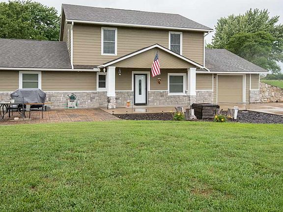 An A+ home on just under 6 secluded acres +/- in Shawnee Heights! This home has an endless list of updates including granite counter tops, remodeled bathrooms, windows, siding and so much more. The attached garage is a tandem, measuring 16x32, but the circle drive leads you back to a 32x26 shop plus a 40x18 lean-to building. You won't find a home nicer than this on land for this price!