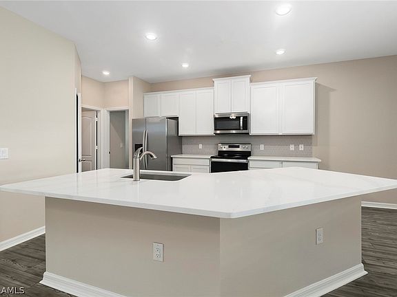 The expansive and luxurious Marathon II home is located within the breathtaking area of south Cape Coral. This new, one-story home features ample space with an open concept living area. With 5 bedrooms and 3 full bathrooms complete with unbelievable upgrades such as stainless steel Whirlpool® kitchen appliances, quartz or granite countertops, 42” upper cabinets with crown molding, an undermount kitchen sink, Moen® faucets, an outlet with USB charging capability, brushed nickel hardware and an attached two-car garage with a Wi-Fi-enabled garage door opener. The Marathon II consists of a master suite complete with a walk-in closet and a double sink-vanity, as well as a bonus room/den, a breakfast nook and walk-in pantry, a sprawling covered back patio and beautiful front yard landscaping. Living in south Cape Coral provides residents with easy access to the best shopping, dining and entertainment Fort Myers has to offer.