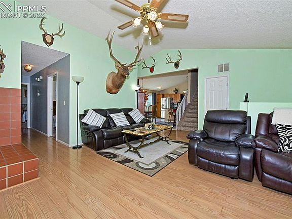 Beautiful, well maintained home in the Cheyenne Mountain area! This home features two owner's suites, one up stairs and one on the main level with an additional bedroom on the main level. Suite on the main level has access to the patio out back surrounded by the beautiful landscaped, fenced in yard. Features a walk in closet, separate vanity area from the main level shared bath with separate entrance from the bedroom. Down the hall is the second main level bedroom and separate laundry room. Relax next to the wood burning fireplace in the living room which features vaulted ceilings. Up stairs you will find the second owner's suite with vaulted ceilings, private bath with plenty of closet space. Minutes to Fort Carson, Cheyenne Mountain State Park, Broadmoor, Broadmoor World Arena and lots of shopping centers!