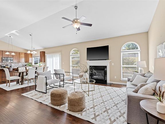 BEAUTIFUL 12 year Young, 3 Bed, 2 Bath Brick Ranch with an AWESOME 3 car garage AND BRAND NEW Roof in the highly desirable St. Andrew’s subdivision, is sure to impress! Beautiful brick, elevation, and lush landscaping welcomed you home! Inside, gleaming hardwood floors and vaulted ceilings Complement the open floorplan which is great for entertaining! The spacious great room hosts a cozy gas fireplace, surrounded by Palladian windows, bringing in plenty of natural light. The updated kitchen features 42” custom cabinets, large center island w granite countertops, backsplash, and walk-in pantry. This room offers easy access to your private backyard, complete with a stunning, stamped patio. The primary suite boasts a walk-in closet, coffered ceiling, bay window, and an upgraded primary bathroom. The garage is a car lovers dream, fully finished w painted walls and floors w built-in cabinets. Enjoy easy access to ALL the major highway's 70, 94/364, 370!