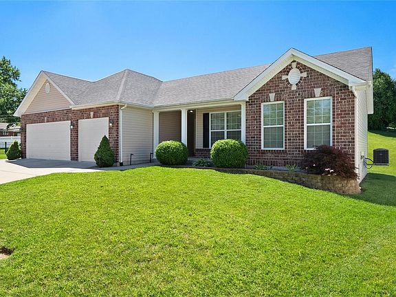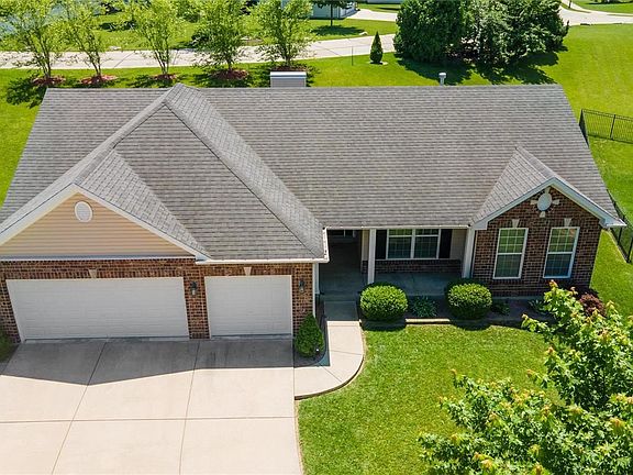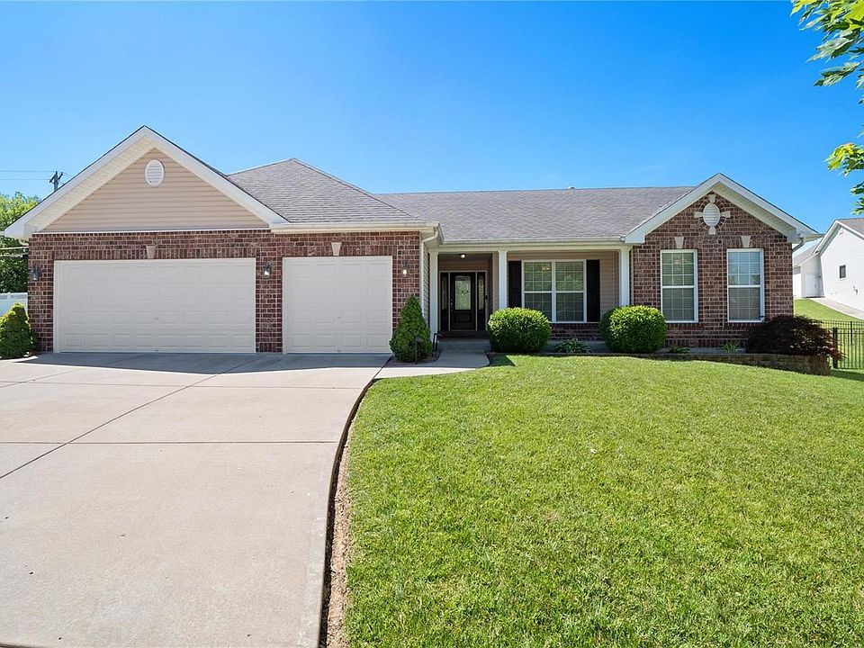 BEAUTIFUL 12 year Young, 3 Bed, 2 Bath Brick Ranch with an AWESOME 3 car garage AND BRAND NEW Roof in the highly desirable St. Andrew's subdivision, is sure to impress! Beautiful brick, elevation, and lush landscaping welcomed you home! Inside, gleaming hardwood floors and vaulted ceilings Complement the open floorplan which is great for entertaining! The spacious great room hosts a cozy gas fireplace, surrounded by Palladian windows, bringing in plenty of natural light. The updated kitchen features 42" custom cabinets, large center island w granite countertops, backsplash, and walk-in pantry. This room offers easy access to your private backyard, complete with a stunning, stamped patio. The primary suite boasts a walk-in closet, coffered ceiling, bay window, and an upgraded primary bathroom. The garage is a car lovers dream, fully finished w painted walls and floors w built-in cabinets. Enjoy easy access to ALL the major highway's 70, 94/364, 370!