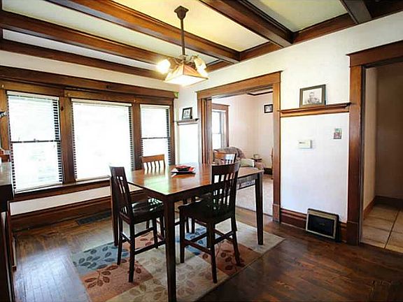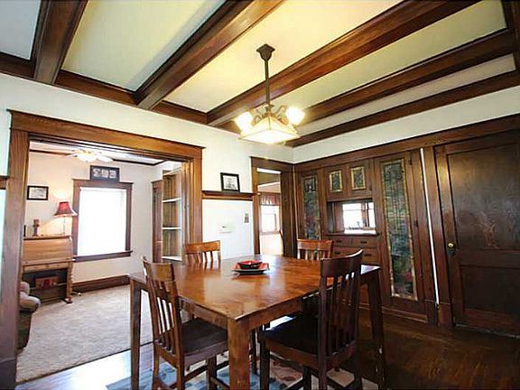 This must see historic home offers loads of character and charm. Eligible for 100% financing. This home features a cozy front porch, real oak wood throughout, original hardwood floors and stained glass. It also features 9ft ceilings and ceiling fans throughout the home. The kitchen was updated in 2010 with ceramic tile flooring & hickory cabinets. New roof, deck and exterior doors. New carpet and paint in 2013. 4 large bedrooms, sunroom, 1 bathroom upstairs and a bonus room on the main level. The walk out basement is unfinished with high ceilings, but could be easily finished for extra living space with plumbing stubbed in. The huge attic is a walk up that offers potential for extra living space. This home has a detached two stall garage with a wood burning stove to keep you warm in the winter. This is a corner lot with a large fenced in yard and within walking distance to all 3 schools in Center Point.