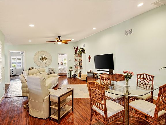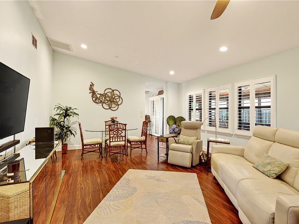 Find your perfect match in this pet friendly community. Vaulted ceilings & sleek floors run thru-out the smart split-plan design. Your inner chef will swoon over the granite & stainless steel kitchen. Plantation shutters add style while clever built-ins conquer clutter. Generously sized bathrooms have sprawling counter space making your morning routine chaos-free. Your huge, covered & screened patio is an extension of your home w/plenty of space for lounging & dining blissfully mosquito-free. A new fence ensures total privacy. Forget weekend chores-lawncare & exterior maintenance are handled.