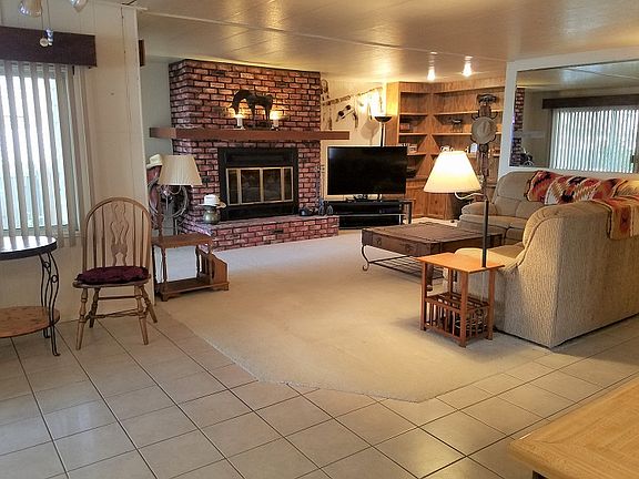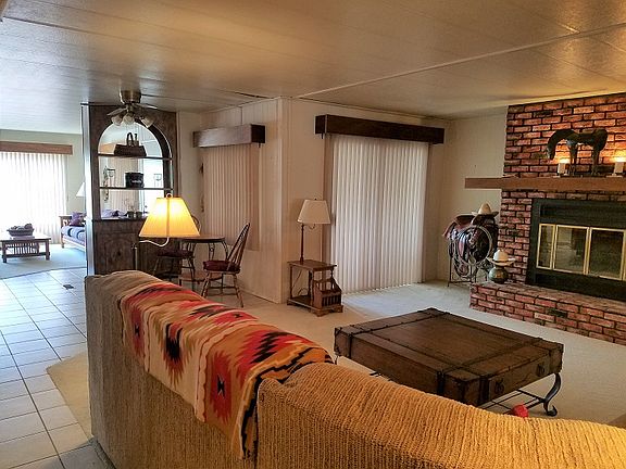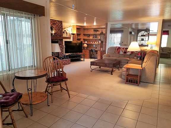 This is a beautiful large 2 bedroom, 2 bath home with an open kitchen, living room and a den/family room with fireplace, built-in office space, and the large sectional stays. The kitchen has a gas cooktop, oven, 2 year-old dishwasher and a great pantry. Carpet is almost and there is tile in the kitchen. The large master bedroom features double walk-in closets. The master bath has a garden tub, double sinks and a vanity. A large laundry room provides extra and washer/dryer stay. Fans throughout, automatic sprinklers, replumbed with pex plumbing, home has both air conditioning and evaporative cooler, and a great patio . . . this home is priced to sell and won’t last long! Please our office to make an appointment to view this home.
