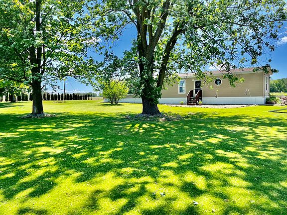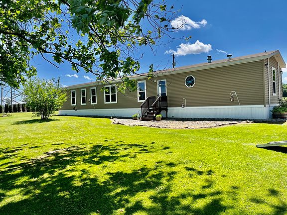 Country living abounds this 1.58 acres of privacy. 2015 Fairmont manufactured/mobile home with 3 bedrooms, 2 bathrooms, large open kitchen with snack bar/center island, and dining room. Living room with large built-in entertainment center. Primary bedroom with private bathroom, garden tub, shower, beautiful vanity and walk-in closet. Additional full bathroom with shower and bathtub. Plenty of closet space in the bedrooms. Laundry room off kitchen. Deck, 24x32 pole barn with wood stove, additional 2 sheds for storage. The lawn is beautiful with mature trees, apple and peach trees, garden area with red and black raspberries grapes, rhubarb and asparagus.