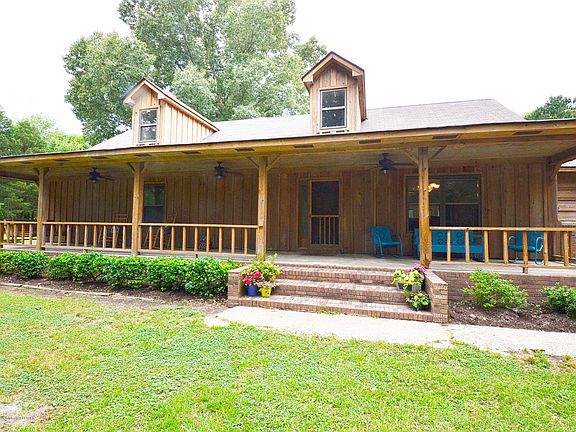 Country living at its Best!! 10+/- acres with shared pond and tons of mature trees. This wonderful home has 4 bedrooms, 3 full baths with a large 52x7.9 covered front porch. The formal dining room is just off the entry way and has an amazing view of the front yard. The spacious great room has a wood burning fireplace and the kitchen has a cozy breakfast area, plenty of cabinet space and a large walk in pantry. There is a sun room just off the great room that has plenty of windows and a door that leads to the covered patio. The master bedroom has plenty of space and also has a fireplace and a private master bath with jacuzzi tub, double sinks and a walk in shower. The downstairs also has an additional bedroom, a full bath and laundry area. The upstairs is complete with two more bedrooms and