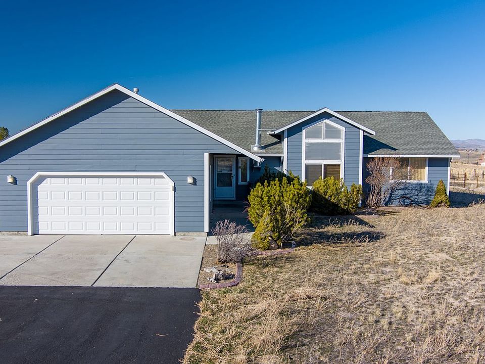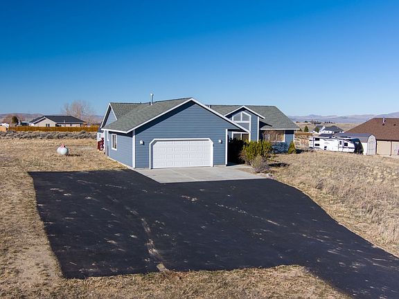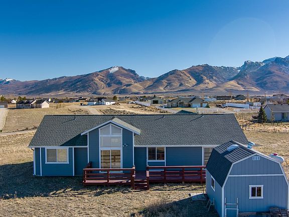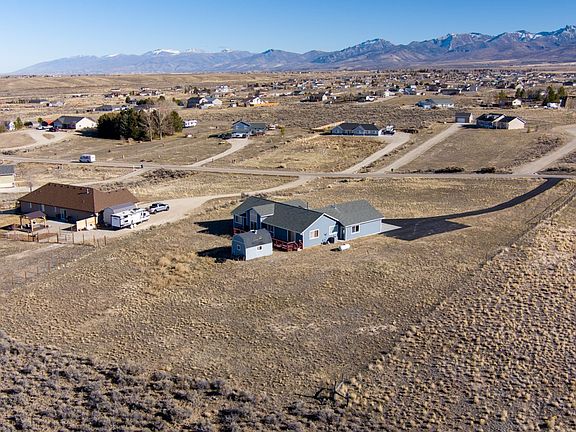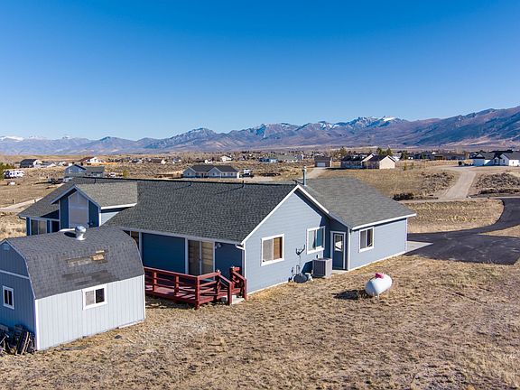 Welcome to this ranch style home that features 3 bedrooms 2 baths with open floorplan and vaulted ceilings with a view of the Ruby mountains. Woodstove in the living room will keep the house cozy in the winter months, kitchen has tile countertops and a raised breakfast bar, sliding glass door off the dining room to the back deck, spacious main bedroom with walk in closet and en suite bath with double vanities, separate tub and walk in shower. Laundry/mud room is off garage entry, asphalt driveway, central air, storage shed