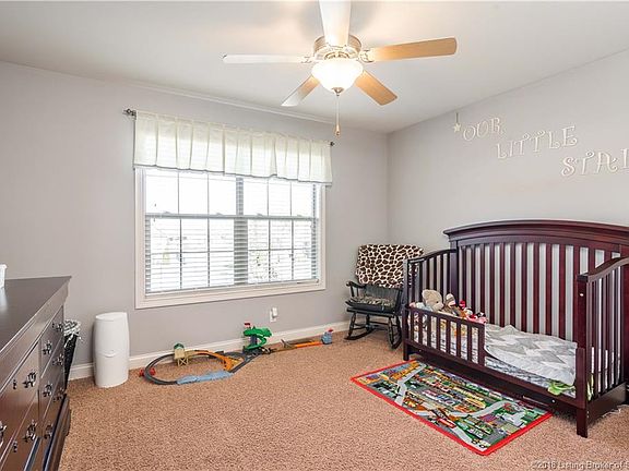 This is a must see home in the beautiful Woodbridge Farm subdivision in Floyd County! This home sits on a Cul-de-sac in this very sought after neighborhood. As soon as you walk into this house it will feel like home! This home features 5 bedrooms, 3 1/2 baths with split bedroom floor plan, an extra large master bedroom featuring 2 large closets (one is a walk in), trey ceiling w/crown molding, zoned HVAC and a gorgeous ceramic tiled Master Bathroom. This home is a kitchen lovers dream offering a custom solid wood cabinet package, pull out shelving in cabinets, lots of counter space and a full compliment of Kitchen Appliances. The upstairs family room & dining room offers large windows allowing lots of natural lighting and HIGH Ceilings, a GAS FIREPLACE & Gorgeous Hardwood Flooring. It also features a well designed finished daylight basement with an additional kitchen/bar area, Gorgeous Stained Concrete Flooring, GAME ROOM and Bonus Room. Laundry Room also has many custom cabinetry for storage and a sink. This floor plan flows very well and has extensive hardwood flooring, ceramic tile and carpet throughout. Spacious 2 Car Garage. Outside features a large deck and massive/private yard. Lot Size is .75 Acres. HOME WARRANTY PROVIDED.