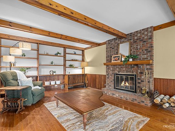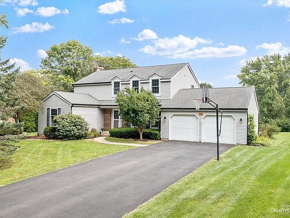 A rare opportunity to own an expansive lot (0.55 acres) in highly sought after Gaslight North subdivision. Only 1 block from tennis courts and more at Gaslight Park. This spacious colonial offers 4 beds, 2.5 baths and a finished basement. It's about 2256 square feet above grade and a total of 3484 square feet including the basement. The living areas are sizable and perfect for entertaining. Buyers will love the flow and how connected the kitchen is to the eat-in area and family room. The family room is stunning and features built-in shelving, wood beams lining the ceiling, hardwood floors and a wood burning fireplace. The sunroom is large and light filled and leads out to a beautiful paver patio. There's a cozy greenhouse off the sunroom and the large backyard features raised garden beds and a shed for storage. Highly rated District 300 schools! This home is also equipped with a fully paid for solar system. It's estimated to save buyers about $100/month. The seller's last electricity bill was $16.83.