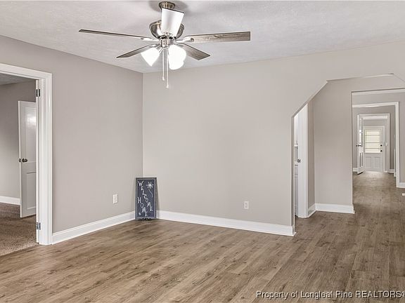 This fully renovated 3-Bedroom, 2-Bath home sits on nearly 2 acres (1.958 acres), offering room to breathe without sacrificing convenience. Built in 1954 and thoughtfully updated, the home features new flooring, a new roof, new windows, fresh paint, and a layout that actually works for everyday living. With approximately 1,900 Sq Ft, this home includes a large rear den with an electric fireplace, perfect for a second living area, game room, or entertaining space! Step outside and enjoy a HUGE covered back porch ideal for quiet mornings or hosting friends, plus a large custom firepit area! You'll also have multiple carports, enough for 3 maybe 4 vehicles! This is separate from the powered shed! The property also features blueberry bushes next to the car ports! Country living and conveniently located only 15 minutes away from Walmart, Aldi, Lowes and several restaurants. All this and located just 20 minutes to Fort Bragg. THIS HOME HAS IT ALL! Privacy, land and modern upgrades. This home will certainly not last long, schedule your tour today!