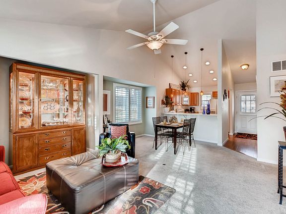 Adorable end-unit ranch townhome that faces Moon Gulch Park and is in the heart of West Arvada. Located just blocks from the Apex Rec Center, this home is in a quiet community. Inside, you'll find all main level living in this ranch floor plan. Vaulted ceilings, lighting upgrades & a neutral palette ready to add your own personal touches. The kitchen has beautiful natural cherry cabinets, light counters & wood floors. Two nice sized bedrooms share a 3/4 bath with updated fixtures. Classy plantation shutters throughout. Large back patio is spacious allowing for a table, lounge chairs and patio garden pots, all enclosed with a white picket fence. The one car garage that comes with this unit is completely finished w/dry wall & epoxy floor coating as well as ample additional parking. This home has been very well cared & was updated 8 years ago. These properties don?t come around very often to this area. Make this your next home! Hurry will go fast!!!