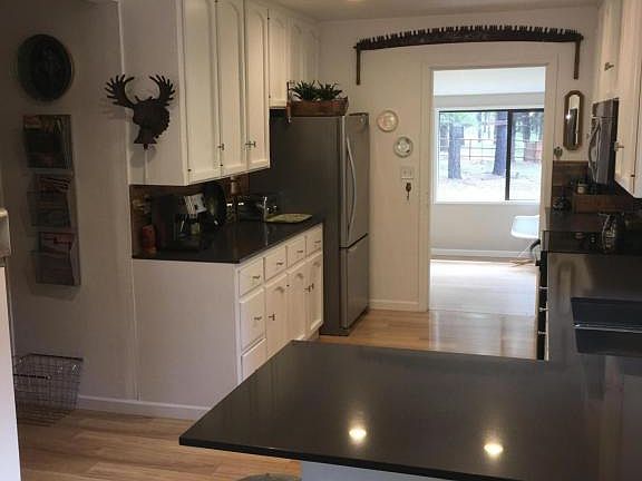 Beautiful Swiss Chalet In the Pines. Rustic Charm with Modern Amenities. Completely Remodeled with lots of Upgrades. New Plumbing and Electrical in 2016. Custom Kitchen features Quartz Countertops, Stainless Steel Appliances and Pallet wood backsplash. New Laminate Flooring and Carpet throughout. Plenty of space with a 360 sq.ft Game Room/Bunkhouse/Office space/Living area/Bedroom. Newly built 200 sq.ft single car garage/workshop. Partially fenced with areas for Dogs, Horses, Goats, Chickens. Huge Artificial Turf Sports Field. Lot Backs to State Trust Land. This Is A Must See