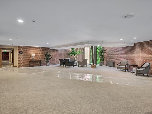 overlooks a serene pond and park. The unit is designed for convenient single-level living and