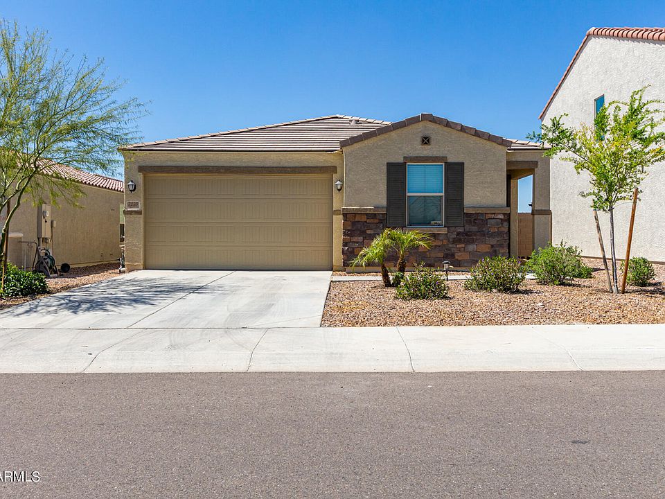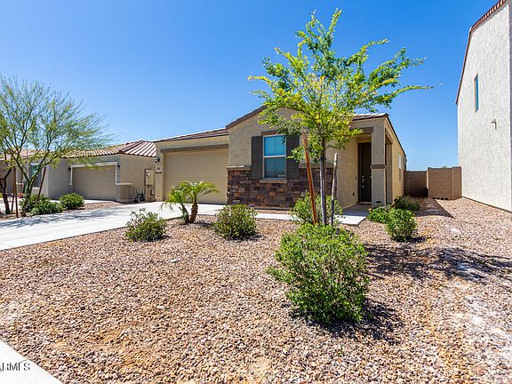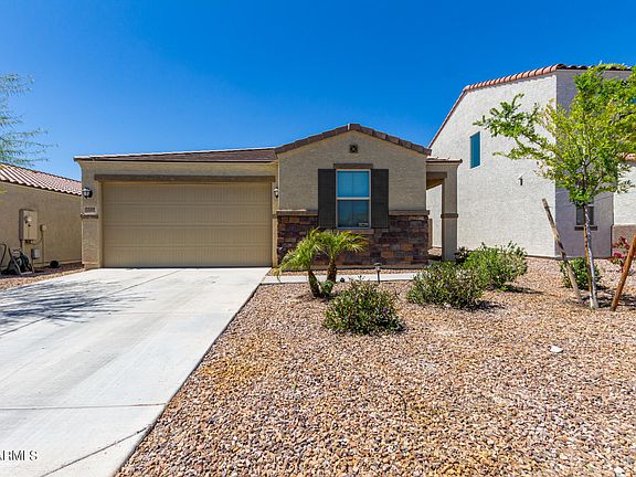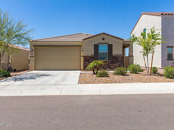 Fantastic opportunity to own this beautiful 3-bed, 2-bath home with a 2-car garage, stone accents, and great curb appeal in Marbella Ranch! Discover a desirable open layout showcasing wood-look flooring throughout the main areas with carpet in bedrooms, a neutral palette, and ample natural lighting. The eat-in kitchen offers enough counter space for your cooking needs, white cabinets, built-in appliances, a pantry, & a breakfast bar. The roomy primary bedroom enjoys a private bathroom with dual sinks, a tub/shower combo, and a walk-in closet. Relax while sipping your favorite drink on the cozy covered patio with beautiful views of the blue sky. Also includes a charming Gazebo, pavers, and a synthetic grass area. No neighbors directly behind! Don't miss out on this gem!