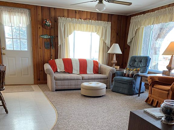 This cozy four season get away is located on Witmer Lake,with a 100 ft. cement seawall. Sitting the first property in from the lake, you can still see the happenings of the lake and enjoy the privacy of your own space. Just sit out on your peaceful covered patio or gather in the spacious side yard around the fire pit with friends. The open concept interior has a spacious kitchen [appliances stay], dining area, and a well lit living room. Two bedrooms and a shower/tub bathroom completes the interior. A 10 by 8 storage building for all your toys and gardening tools. Witmer Lake is known for being a great ski lake, it also connects to several other lakes with fishing and fun!