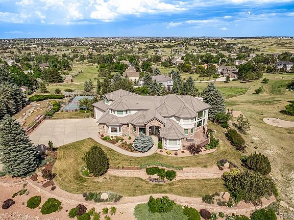 *Experience a revitalized & stylish ambiance w/ our freshly painted, light palette exterior!* Immerse yourself in the grandeur of this exquisite Chapparal residence on over an acre w/ awe-inspiring 360-degree views of the Rocky Mountains. This luxurious home features five bedrooms & eight bathrooms, offering ample space and privacy for family & guests. The family room, a masterpiece of design, boasts soaring ceilings & floor-to-ceiling windows that capture the breathtaking mountain scenery. A fireplace adds warmth & charm to this spectacular space, making it perfect for entertaining or relaxation. Adjacent to the family room, the chef’s kitchen is a culinary enthusiast's dream, equipped w/ sleek granite countertops, high-quality SS appliances, double wall ovens & elegant cherry cabinets. The kitchen’s center island & breakfast bar, alongside a convenient wet bar, ideal for casual dining & sophisticated gatherings.