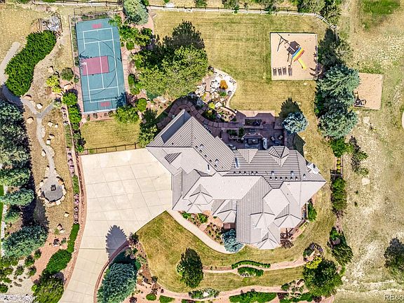 The formal living room, w/ its own cozy fireplace, offers a tranquil setting for intimate evenings. On the upper level, the primary suite is a sanctuary of luxury, featuring plush carpeting, a modern fireplace, a personal coffee bar & an opulent ensuite w/ dual sinks, a soaking tub & a spacious walk-in closet. The additional bedrooms provide comfort & elegance. Descend to the spacious walkout basement to discover an entertainment haven, complete w/ a living area, fireplace, wet bar, gym, bonus room & an awesome theater room, designed for movie nights & entertainment. Outside, the extensive lot boasts a sport court, deck, built-in BBQ, large play gym & spa, offering a perfect setting for outdoor enjoyment & relaxation against the stunning backdrop of the Rockies. This Chapparal gem, w/ its 5 beds, 8 baths & exceptional amenities, is more than just a home; it’s a lifestyle of unparalleled luxury & natural beauty. This beautiful landscaped property that has every detail contributing to a living experience of unmatched elegance & comfort, both indoors & out.