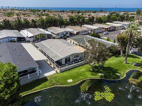 The. Nicest. Home. in Lakeshore Gardens. Spectacular location with 720 Sq Ft wrap around deck. Minutes to the Beach. Impeccable quality inside and out. Rebuilt 2023 with full permits. Comfortable for entertaining inside or out on the deck overlooking the pond. Enjoy the cool ocean breezes and the friendly neighbors of Carlsbad's Premier 55+ community. New A/C, new roof, vaulted ceilings, open and spacious living/dining/kitchen area with doors out to the deck. New easy maintenance landscaping. This home will WOW you. Your friends will be impressed and you will enjoy living the comfortable beach lifestyle in this 3 bedroom, 2 bath exceptional home. NO Real Estate Taxes!