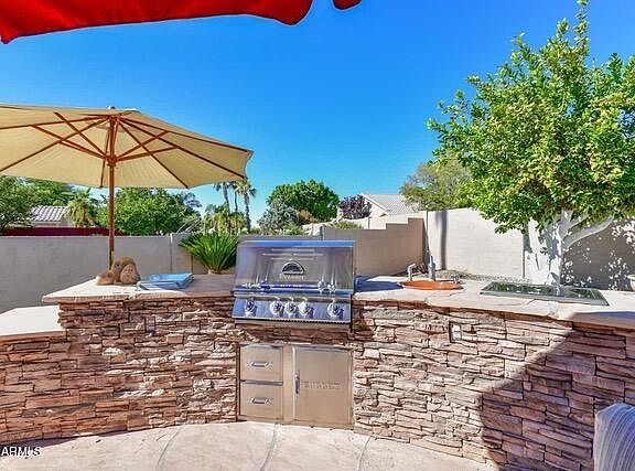 HIGHLY UPGRADED HOME PERFECT FOR HOSTING!! Close to A+ schools! This elegant split floor plan was very well loved by its owners. Featuring a beautifully remodeled kitchen with an oversized granite island as the focal point, Angelo custom crown molded cabinets and stainless steel appliances to match the luxurious feel throughout the home. The large yard is every entertainers dream with a sparkling, PebbleTec play pool, a propane built-in BBQ with a sink and ice box. Come and see all of the upgrades this home has to offer!