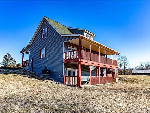 Outstanding opportunity for outdoorsmen, hunters or environmentalists. 47.5 acre farm with well maintained horse trails throughout property. Rolling terrain with 3 lakes, 2 are stocked. Several outbuildings including 42x12 barn w/horse stables, 42x24 pole barn, 30x24 detached garage. Cape cod style newer house with front and back porches. 10 ft ceilings throughout the interior and two first floor bedrooms. Second floor has two large bedrooms with storage galore. Eave storage runs the full length of the house on both sides. The walkout basement is ready for your finishing touches. Property is full of wildlife, deers, turkeys and geese. Beautiful sunrise and sunset views. Make this country estate yours!