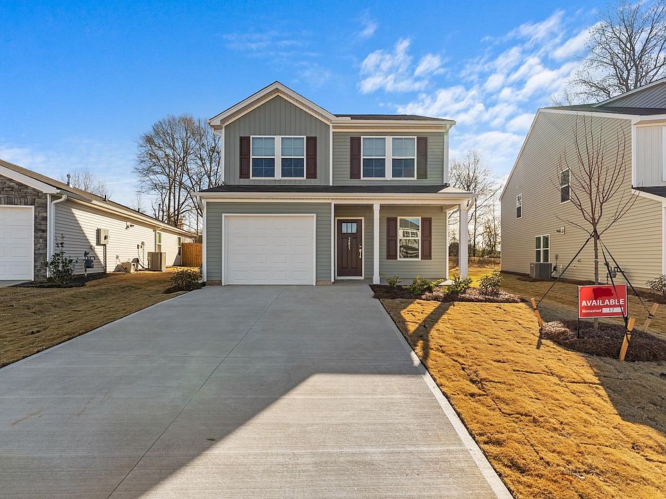 The Evans floorplan will blow you away with what it has to offer. As soon as you enter, you will see the LVP flooring that is carried throughout the downstairs. The kitchen is loaded with upgrades, including granite countertops, pendent lights and stainless steel gas appliances. It overlooks the breakfast area that is open to the family room that would be a perfect place to gather as a family. You can also enjoy evening nights on the covered back porch located right off of the family room. The LVP flooring is continued to the primary suite located in the back of the home on the main level. The primary is spacious and has plenty of storage, with a large walk in closet and additional storage in the primary bathroom. The home is complete with 3 additional bedrooms and a bathroom upstairs. It is located near shopping and schools. Stop by today for more information!