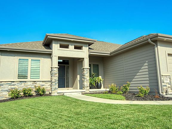 5 bed, 3 bath 3 Car split ranch floorplan featuring decorative ceilings, beautiful windows, & large stone fireplace. Kitchen offers oversized island, granite countertops, beautiful cabinets, with separate dining area. Bonus features include gas cook top, under & over cabinet lighting, pantry, & walk out to covered deck. Main floor laundry connected to primary walk-in closet and through to ensuite. Primary bath offers split sinks, huge window, soaker tub & large walk in shower! Downstairs offers 2 more bedrooms, 3rd bathroom & 2nd Fireplace. Unfinished room in basement with egress window could be 6th bedroom, in home gym, play room or back office. Whole home wired for sound and security. Enjoy sitting on the deck overlooking beautiful landscaping. Home sits off the walking trail towards the lake, is just down the street from the community pool & new elementary school. Hurry Home, this one is it!