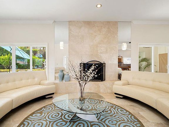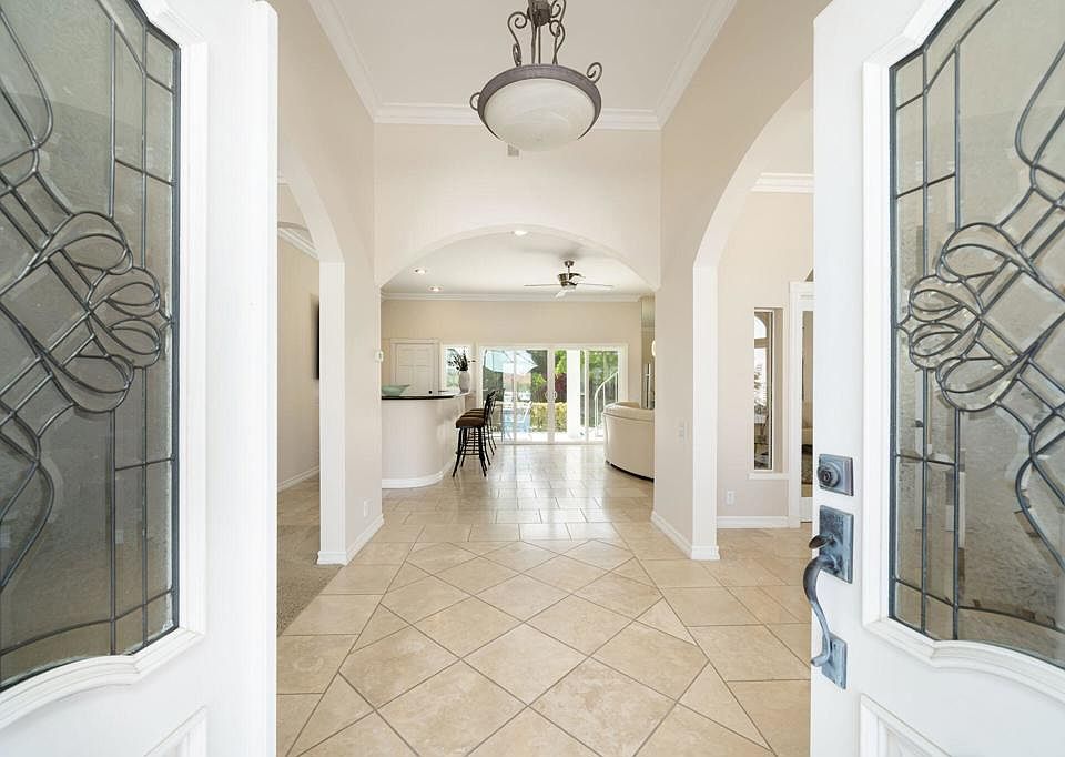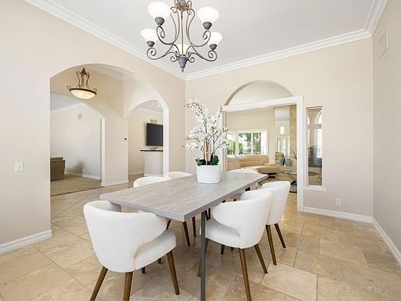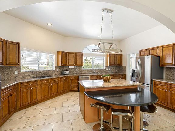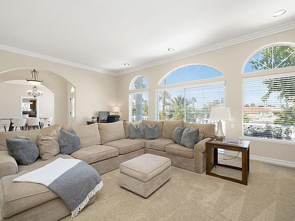 The White House In The Summit, A True South Palm Desert Gem! 4 bedrooms | 4 bathrooms|3622 sq ft Perched high in South Palm Desert, The White House located in the Summit community is a modern custom home built with colonial architecture as reflected by the stately entrance with an elaborate walkway adorned with flowers guiding guests to the large front porch perfect for socializing before entering the home. Inside is an open and airy layout flowing through the living area, dining room, and immaculate kitchen with a grandiose entertainment bar complimented by stainless steel appliances and abundant storage. The spacious primary suite contains walk-in closets, double vanities, a palatial tub, and a walk-in shower. Walk directly from the primary to the luxurious pool and spa area located away from the guest rooms set among the dream backyard manicured with lush landscaping highlighted by a bountiful collection of fruit trees including limes, lemons, grapefruit, and oranges. Every detail was addressed with this breathtaking custom home nestled in the highly sought after community of the Summit located minutes from El Paseo, fine dining, shopping, hiking, golf, tennis, golf cart ride to Ironwood Country Club & all things that make desert living paradise. The often talked about deck on the roof provides immaculate views of the valley that are unforgettable.