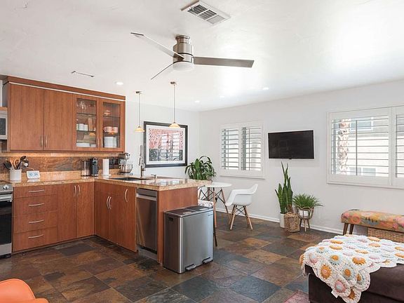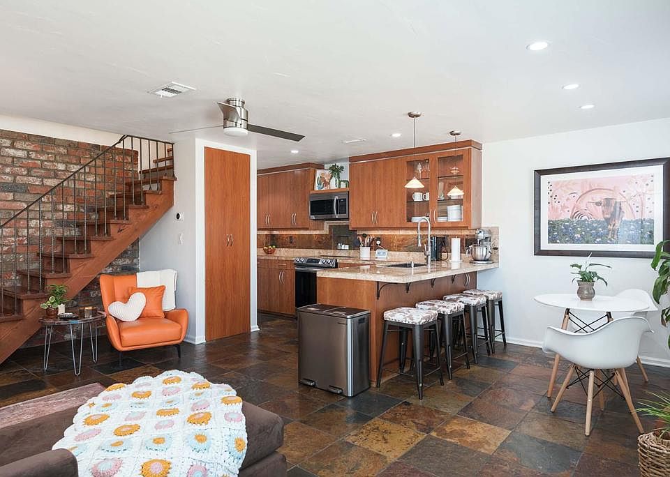 Ready for MOVE IN!! This 2BD/1BA town home style unit at Indian Creek Villas is one of the nicest I have had the privilege to represent. Completely Remodeled with Tile Granite Countertops, Recessed Lighting, Smooth Ceilings and Stainless Appliances, it shows incredibly clean. Newer Dual Pane windows with quality shutters along with reconfigured spaces that maximize the 840 sf. The condo offers slate tile flooring and the Original Variegated Brick accent wall. Upstairs is a Primary Bedroom with walk in closet and a guest bedroom that could be used as a home office. The Full-Bath has updated cabinets and tiled Shower over Tub. This unit also has a shared garage and shared onsite laundry. Our Community has two pools and spas and adjacent hiking trailheads. Close to all Central Valley Shopping at The Shops in Palm Desert, El Paseo Shopping District and also close to The College of the Desert and The Living Desert. Easy Freeway access on Monterey Ave. Come and check this great quiet location, lower monthly HOA of Just $379.00/Mo. which includes EQ Ins. Make an OFFER!
