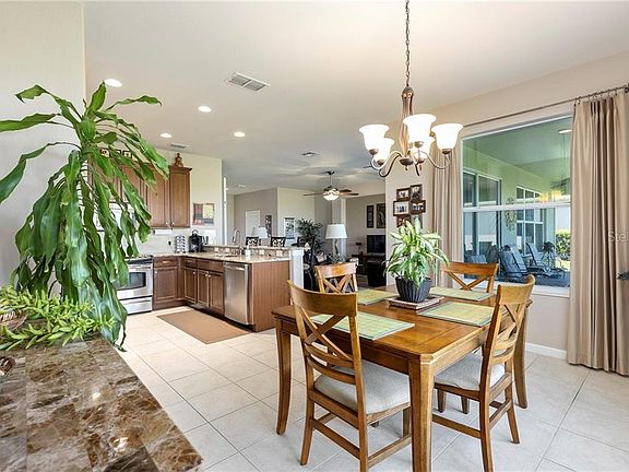 Stetson 2+den/2/2 with meadow views and sunsets that will take your breath away. This home has only had one owner and been lovingly cared for throughout its ownership. Mature landscaping, 8' entrance door, laminate,tile,and carpet flooring, custom paint, fans and lighting, French doors to den, window treatments throughout. Kitchen has granite countertops, custom tiled backsplash, upgraded sink and faucet, 42" cherry cabinets, and SS appliances. Window treatments throughout finish the interior accents. Now for the best space in this home, the large covered and screened lanai that overlooks the meadow views. This is such a wonderful place to sit for your morning coffee, read a book, or enjoy the sunsets. And believe me these are some of the most colorful sunsets you will ever see, and why not enjoy them from the comfort of your own home as often as you like. If you are looking to retire in Stone Creek and would like a private tour, now is the time to call.