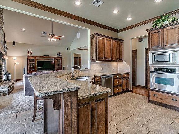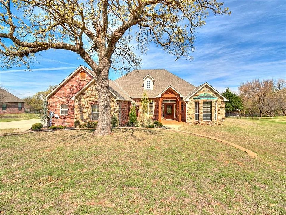 A rare find! Peaceful average lot in a gated addition with fully fenced yard. This custom-built home was built with versatility in mind. Offers 4 bedrooms (or media room), real hardwood floors, 2 living spaces, one with cathedral ceilings boasting rich cedar beams inlay, safe rom, and plantation shutters. A beautifully appointed entry leads to a grand open concept floor plan. You will love your gourmet kitchen boasting granite counter tops, brand new dishwasher (new cook top), water filtration system, under counter lighting and extended breakfast bar. Your grand living area features beautiful 16ft cathedral ceilings with cedar beam inlay, upgraded fan and floor to ceiling stone fireplace (Yes! Goes clear to the 16ft ceiling!). The master suite hosts a master bath with wrap around dual vanities, separate whirlpool tub and shower, and an enormous walk-in closet. Over $6,500 on a full fence and landscaping and lined with beautiful, mature trees. If you want peace and serenity, this is it!