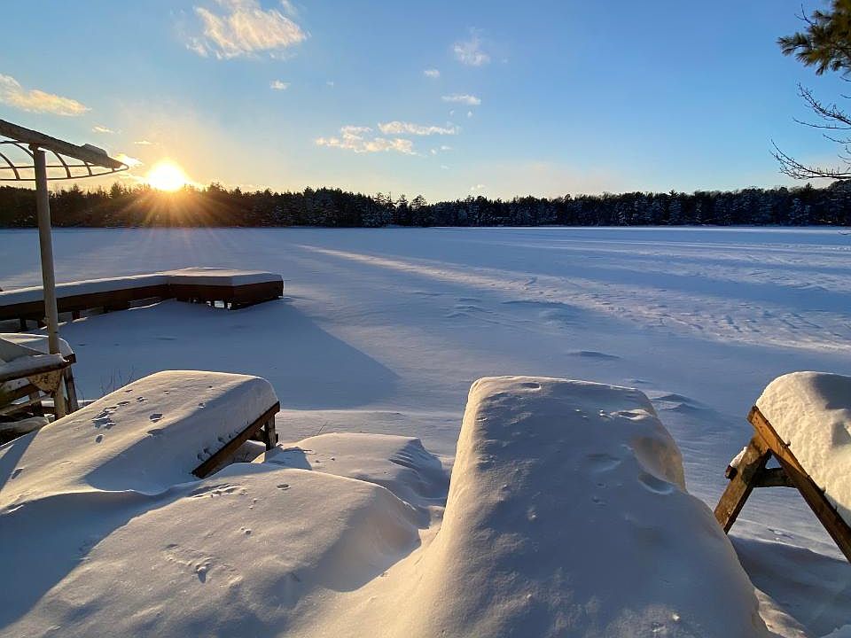 Super charming cottage on the Three Lakes Chain! Facing west on Laurel Lake, you will have sunsets galore and access to all that the 28-lake chain has to offer. Snowmobile trail is just around the corner on Bonkowski. The front deck is so close to the water you could fish off of it! Level, sandy frontage, you are right in the thick of things on the Three Lakes Chain! Newer electrical, 3 bedroom conventional septic tank installed in 2000. Has potential to add on- either add up or add to the back if you so desire! Grab this while you can, it wont last long....Includes all furnishings and south pier. . Other pier, boat lift and jet ski lift are available for purchase outside of the real estate transaction.