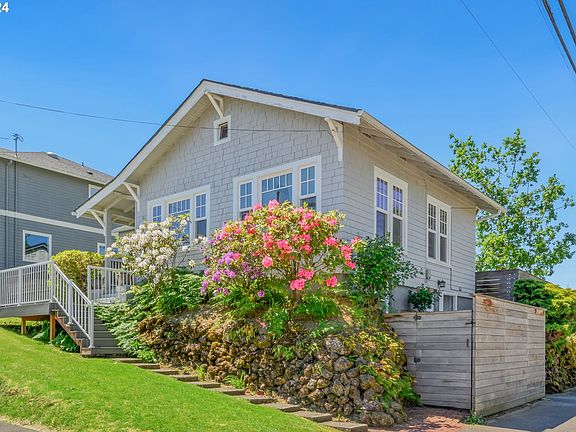 Through Woodlawn Park, you'll land at one of Portland's mainstay food destinations: Tamale Boy, Ranch Pizza or Tough Luck to name a few. Sip some beverages on the patio at Breakside Brewery or start the day with an artisan coffee drink or pastry at Woodlawn Coffee. Enjoy being immersed amongst other local amenities such as New Seasons and nearby Dekum/Alberta neighborhoods. True urban living, perched on an oversized corner lot, sitting high above the street, this remodeled charmer is ready for you to call it home. Step onto the inviting front porch and into the main level open dining/living room with loads of natural light, hardwood floors and territorial views with seasonal mountain peaks. On the main you'll also find two bedrooms with brand new carpet, full bathroom and a lovely updated kitchen with an eat-in nook. Chef's range and hood make all your culinary pursuits possible. Make your way downstairs to the finished daylight lower level offering room to spread out with an additional family room for gathering for game nights and primary suite with a full bathroom. So much versatility with options to utilize the space as your own or earn some passive rental income with its own separate entrance. Off of the kitchen you'll find a private fully fenced outdoor oasis waiting for you. Enjoy dining alfresco and entertaining on the covered deck, or pick herbs and vegetables from your beautiful gated garden beds. Don't miss the enclosed dog-run for your furry friends in the side yard and the rare oversized two-car garage on this generous lot and a half! Features and upgrades include new windows, a high efficiency furnace, central A/C, a tankless water heater, electrical, plumbing, new insulation, full property fencing and French drains in front & back yards, to name a few. See full Features & Upgrades List in Documents.