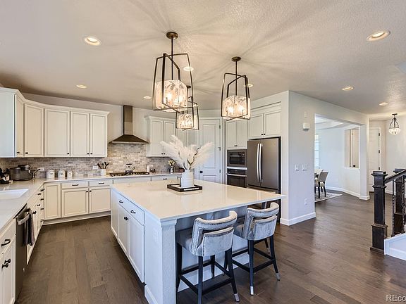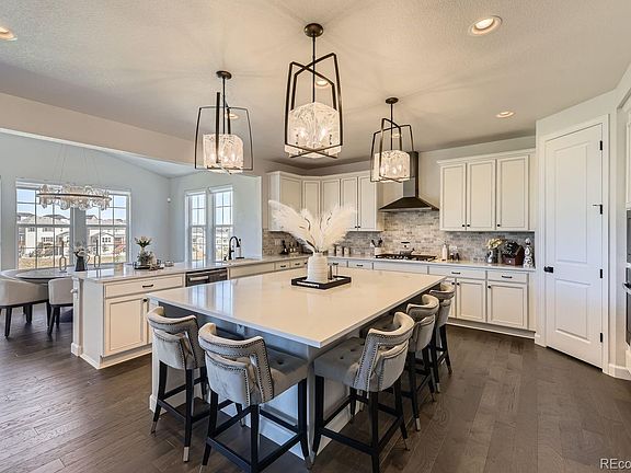 This is not just another luxury home—it’s a rare and remarkable standout in the neighborhood, meticulously designed with custom features you won’t find anywhere else! Every detail has been hand-selected to reflect a level of craftsmanship and style that elevates this property well beyond the ordinary. From lighting handcrafted in New York to oversized stacking glass doors paired with high end remote-controlled blinds, the transition from indoor to outdoor living is seamless. Step outside onto an expanded deck with modern iron railings that overlooks a professionally designed stamped concrete patio—complete with a fully outfitted outdoor kitchen and a custom fire pit that sets the stage for unforgettable evenings. Inside, the gourmet kitchen redefines elegance with a thoughtfully expanded island, premium appliances, and a genuine stone backsplash that infuses natural texture with high-end sophistication. The kitchen’s eat-in area captures sweeping views, while the separate formal dining room offers a refined space for hosting dinner parties or holiday gatherings. Not just functional, but flexible—this home includes a main-floor bedroom with a walk-in closet generous enough to double as a home office or guest suite. Upstairs, the primary suite is a serene escape with dual walk-in closets, a spa-inspired bathroom featuring a glass-enclosed shower, and a deep soaking tub perfect for unwinding. The upper-level loft serves as an ideal retreat or flex space, framed by more custom lighting that reinforces the home's signature design aesthetic. Three additional bedrooms and a beautifully finished full bath complete the upstairs living area. And the fully finished walkout basement is plumbed for a wet bar and designed for entertaining or relaxing in style. A private bedroom and polished ¾ bath offer even more versatility. In a neighborhood of homes, this one sets the standard. Bold, sophisticated, and completely custom—this is more than a home. It’s a statement!