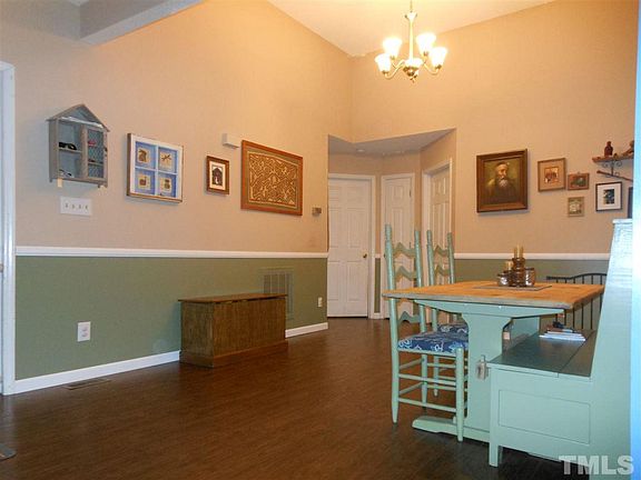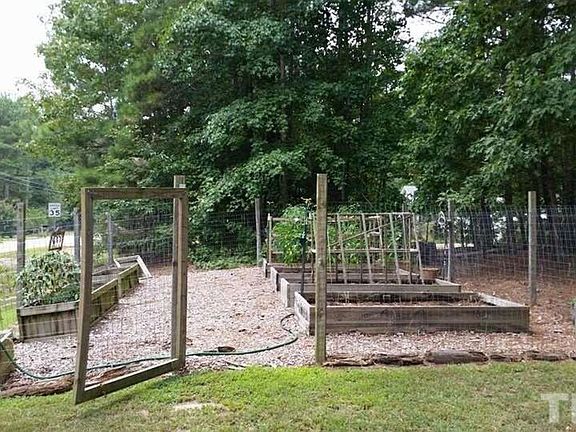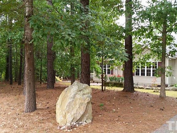 Adorable, cozy ranch home with open floor plan on HUGE PRIVATE LOT! Backs to protected 120 acres of woodlands, country feel yet super close to everything!Near Wendell Falls & all that it brings. Enjoy nature, grow vegetable/herbs in raised bed garden w/watering system, horse shoe & firepit,separate fenced areas. Trails! Storage shed w/lean to. Vaulted ceilings, gas logs, new handscraped Hickory flooring from entry to master, new septic hardware & pumped "14" , new plumbing 15, new well pump/pressuretank13