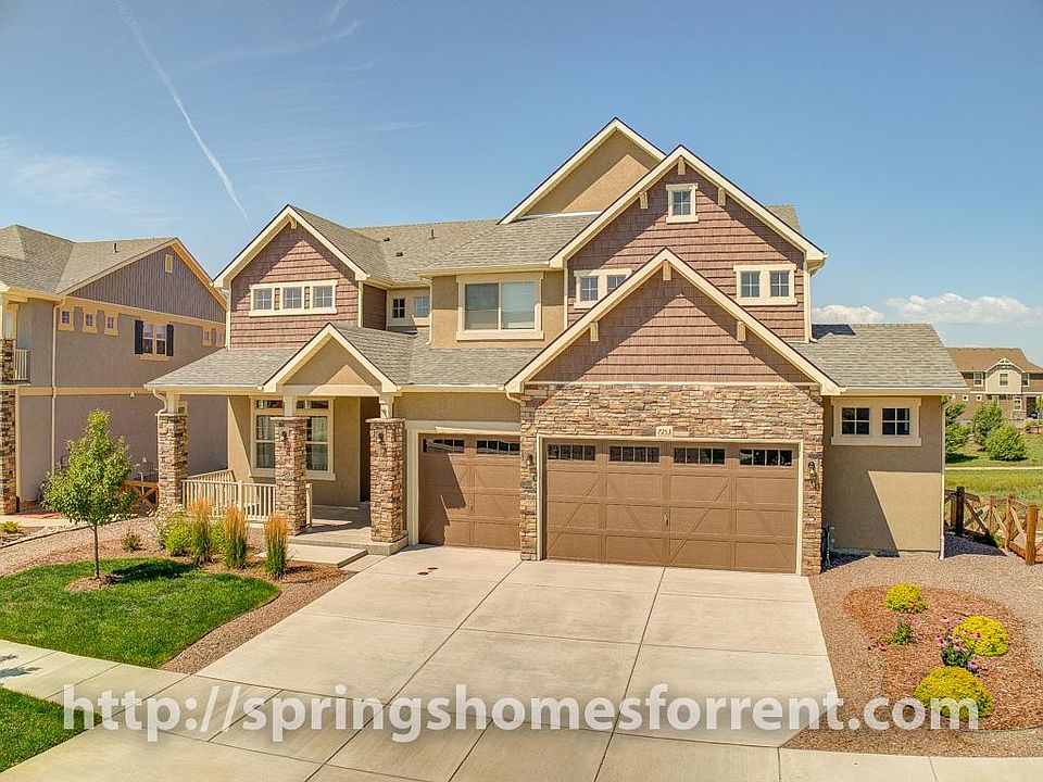 Want views? Enjoy Pikes Peak and mountain views from this gorgeous property backing to open space and trails! Only 2 years old, this semi-custom home features large great room with gas fireplace, spacious dining room, engineered wood floors, gourmet kitchen with granite counters, center island, gas range, walk-in pantry, an office, finished walk-out basement, security system, dual zone heating system, air conditioning (currently being installed), upper-level loft, elegant master suite with 5 piece bath, walk-in shower, walk-in closets in all bedrooms, oversized Trex deck and professionally landscaped yard! Located on a quiet cul-de-sac street with nearby park. Close to community center with pool, a water park, tennis courts and fitness complex!