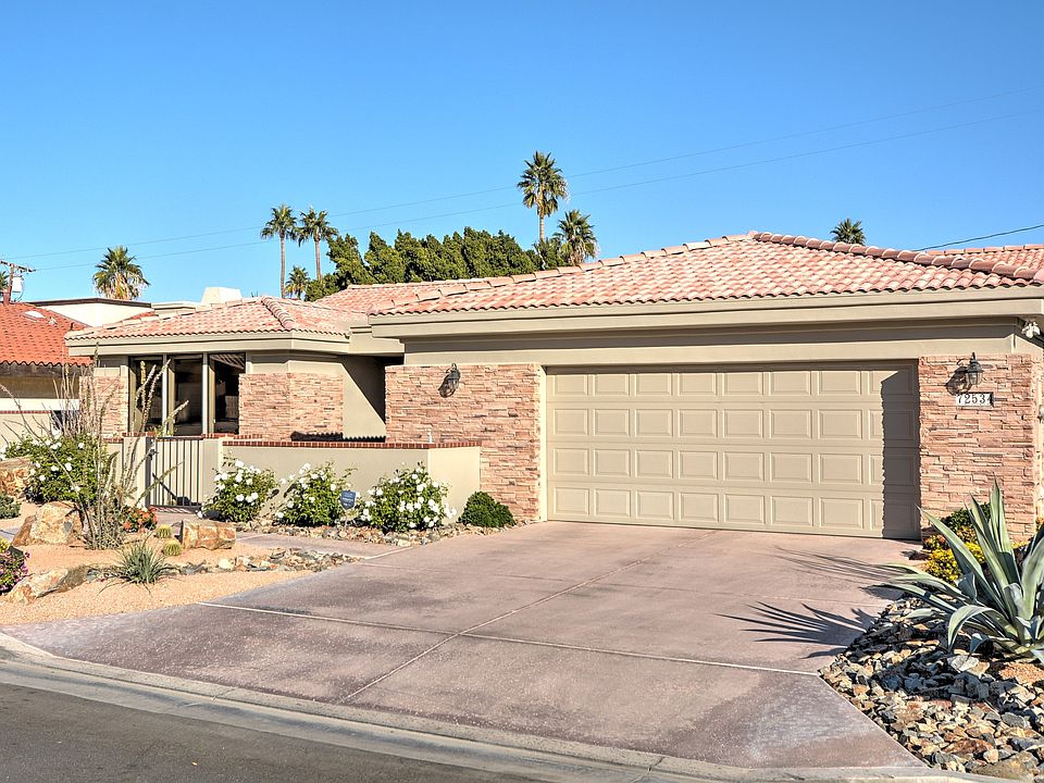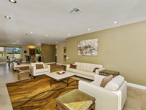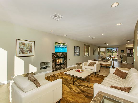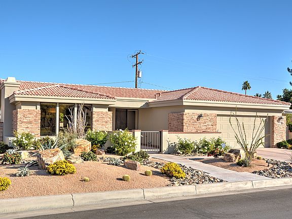This home features absolutely stunning views of the Santa Rosa Mountains, even from the rear yard pool and spa. Located in south-central Palm Desert, it is just a short walk from the network of Santa Rosa Mountain Trails in Palm Desert and it's also an easy walk to the restaurants, shops, art galleries and attractions on El Paseo. This completely remodeled home has to be seen to be believed. Originally built in 1992, the home has been completely remodeled over the last 3 years by the original builder. The home now features an open floor plan, with a great room that extends from the front to the rear of the house. Three large windows were added to the south end of the great room during the remodel to take advantage of the mountain views. The kitchen features stainless steel appliances and granite counters. All of the bathrooms feature new tile showers and/or tubs and granite counter tops.