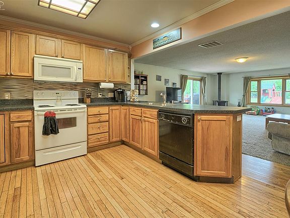 Almost 2000 sq. feet on 2.5+ acres of land. Welcome Home!! Featuring 4 bedrooms including Large Master Bedroom and Walk-In Closet, Living Room and HUGE Family Room with Wood Stove and picturesque views of the phenomenal, partially fenced, back yard. This home is full of updates (Roof, 2010; A/C, 2012; Hot Water Heater, 2014; Water Softener, 2011; Sump Pump, 2013, and new paint and carpet) and is move in ready. Open Kitchen, and All Appliances Stay!! Ceramic tile and Jetted Tub in Main Bathroom. Enjoy your summer in the Central Air or on the beautiful deck. Attached 2 car garage has additional workshop. 0% Down Financing Eligible!!!