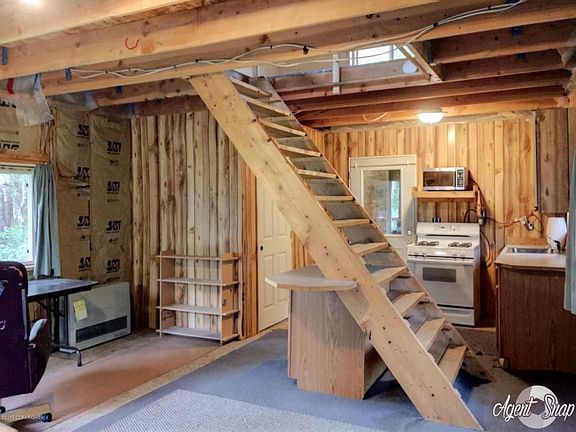 Cozy log chalet cabin on almost an acre. Close to schools and less than 15 minutes to central Wasilla. Gas heat and electricity! Upstairs loft has a walkout deck and plenty of room for 2 beds. Road maintained by the Borough. Recent upgrades include a fully insulated crawlspace, back downstairs wall bumped out 2 feet, wood paneling in upstairs loft.