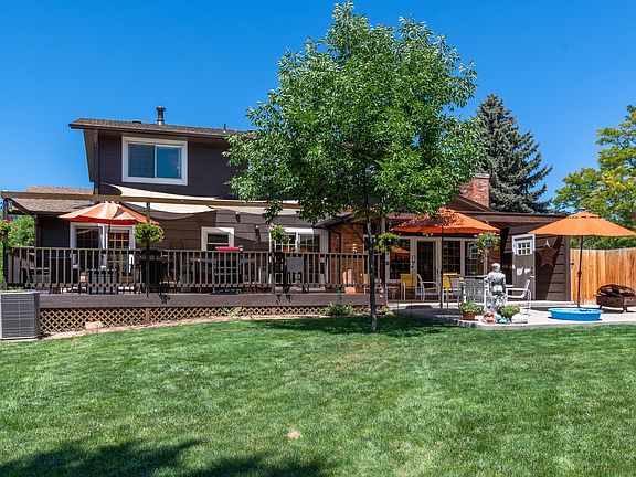 A lovely Columbine Knolls home with plenty of room to relax! This 4 bed / 3 bath has 2775 sq ft of living space plus a deluxe outdoor entertainment area, including spacious back yard with sprinkler system, large covered patio, and Trex deck. Interior of the home is equally inviting, with large family spaces, bedrooms upstairs, and many recent updates. Kitchen, floors, and interior paint all redone. Kitchen has bright white cabinets paired with quartz countertops and a stunning backsplash. Open floor plan between family room, kitchen and dining room. Newer furnace, central air conditioning, windows, stainless steel appliances, siding, and exterior paint. Two-car attached garage with large driveway for off-street parking. Near schools, grocery, 10 minutes to Chatfield State Park.